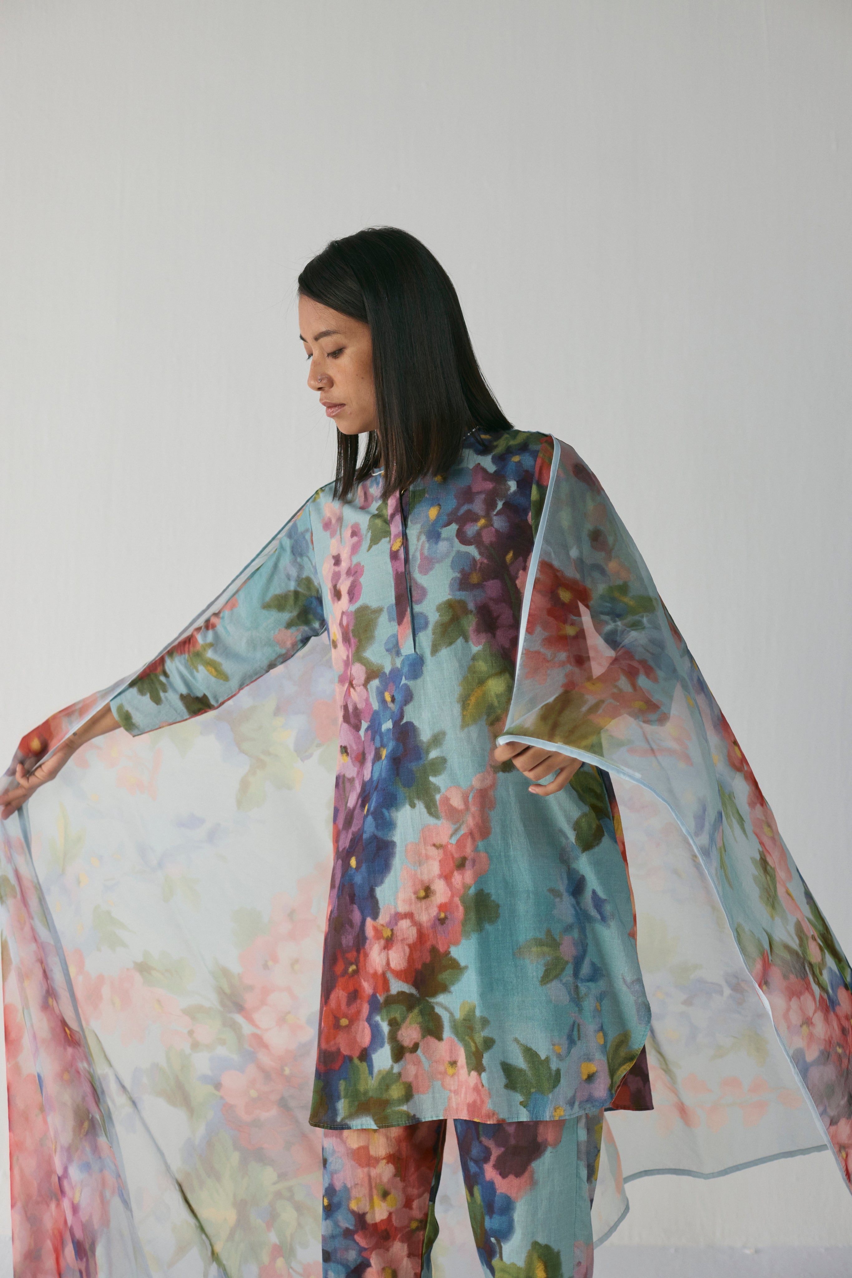 Pair this dupatta with a tonal or neutral kurta set to let its dreamy florals shine, or drape it over a pastel ensemble for a timeless, feminine look.