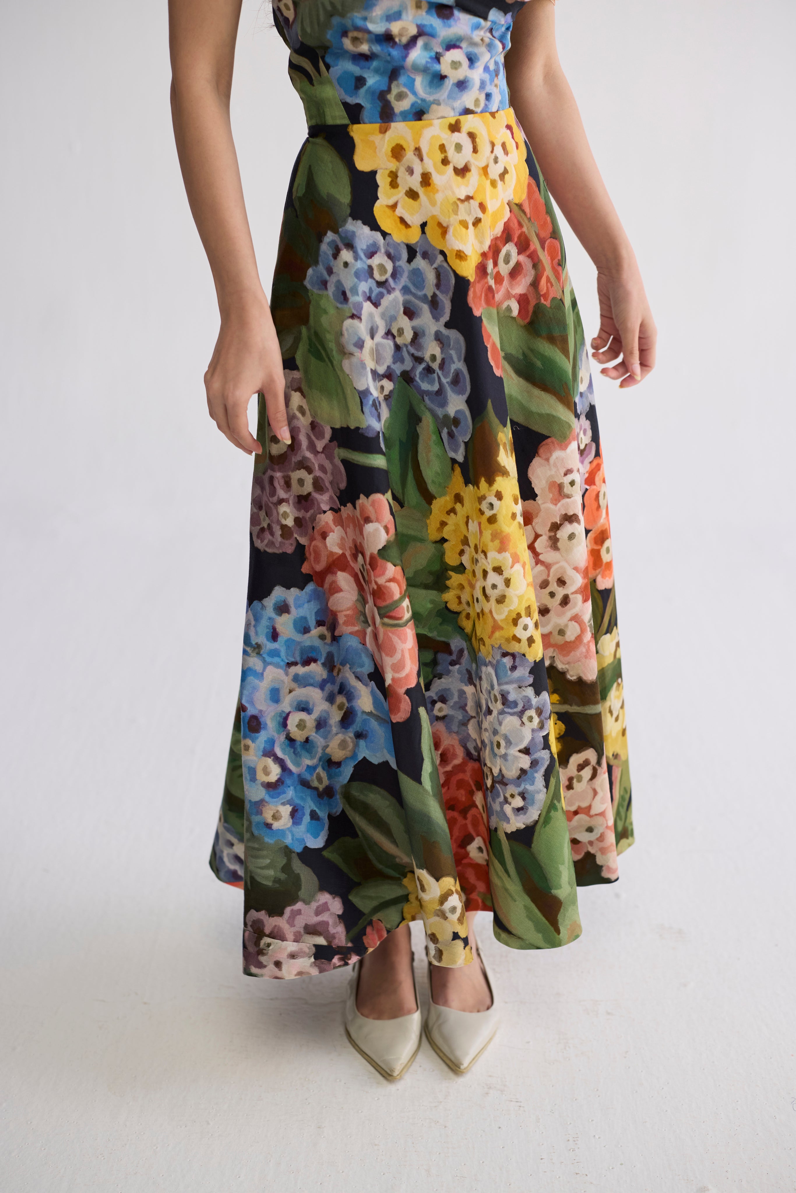 Flared A-line skirt for graceful movement and structure