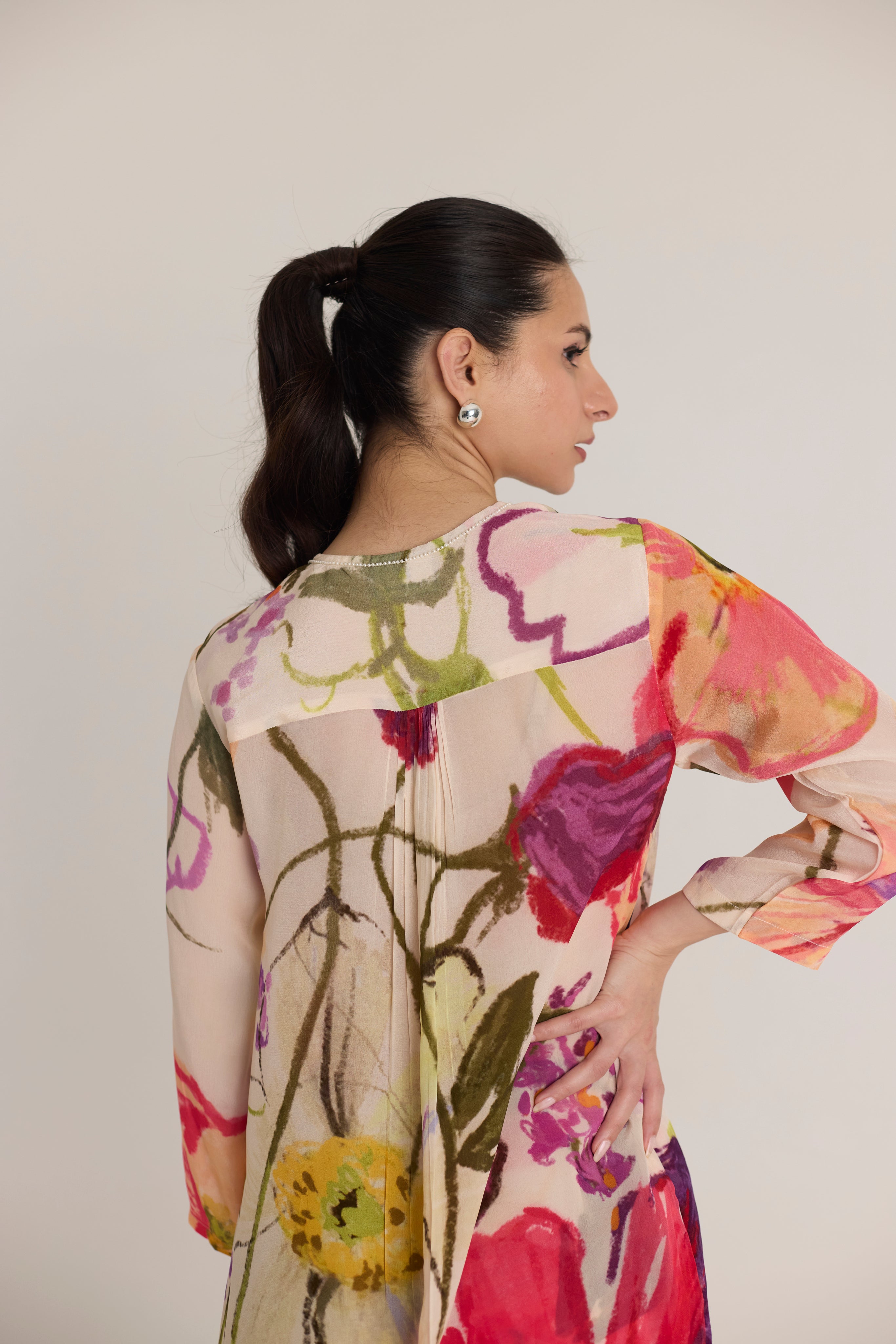Oversized hand-painted floral print for a statement look